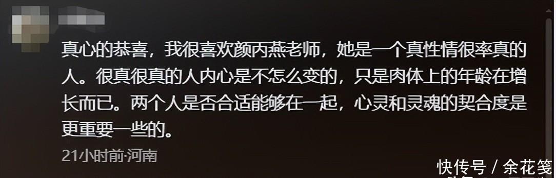 不少网友在得知颜丙燕的这一好消息时,纷纷送上祝福,表示自己是真心的恭喜,很喜欢颜丙燕老师的真性情。更何况两人是否合适能在一起,不取决于肉体上的年龄,而是更要看心灵的契合度。