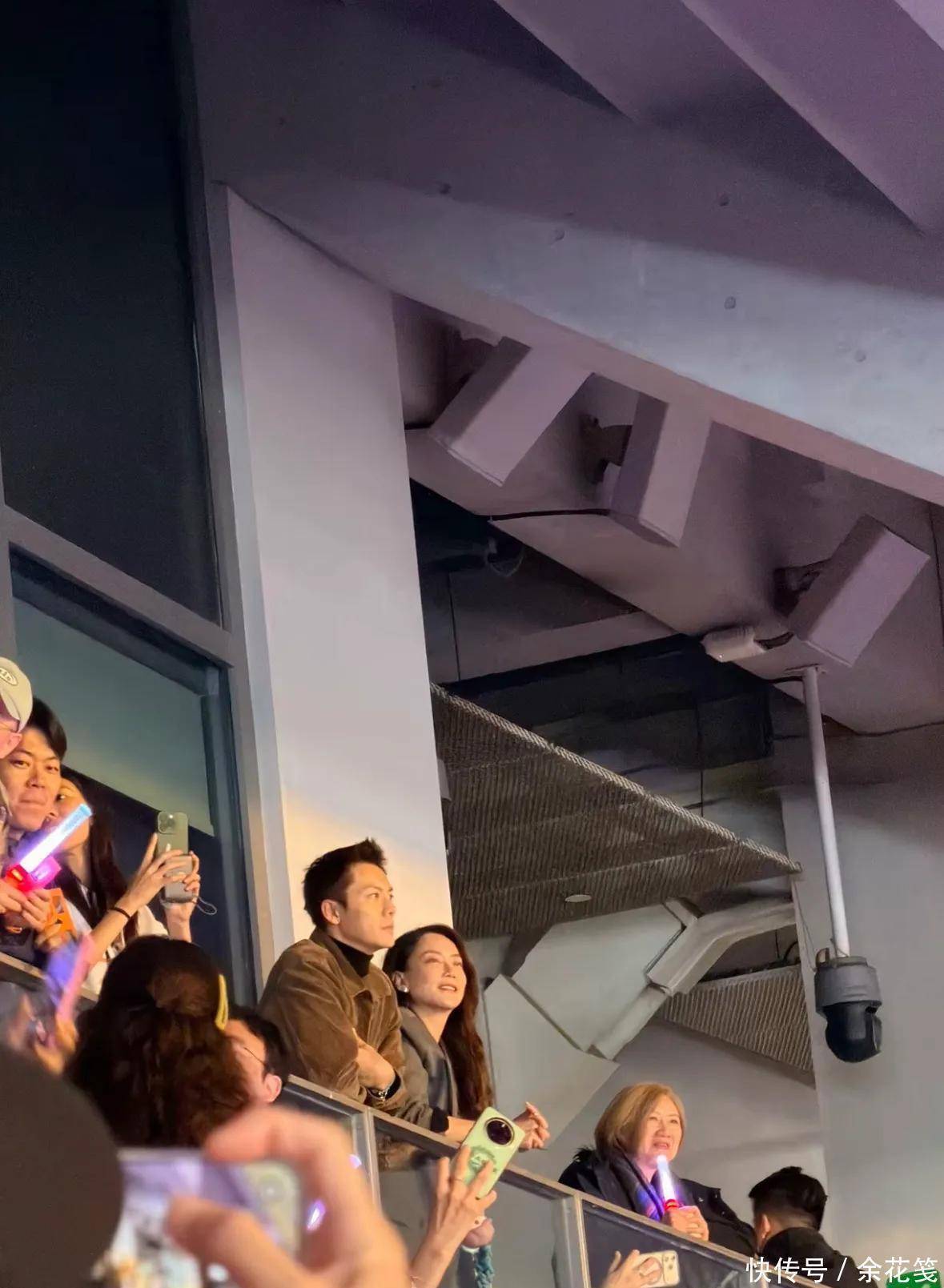 作为同属英皇娱乐的艺人,陈伟霆的空降成为演唱会的一大惊喜,他悄然出现在观众席,随即引发了现场一阵骚动,面对粉丝的拍摄,陈伟霆亲切地挥手回应,不仅大方比出爱心,还俏皮地做出逗趣表情,显得十分随和。